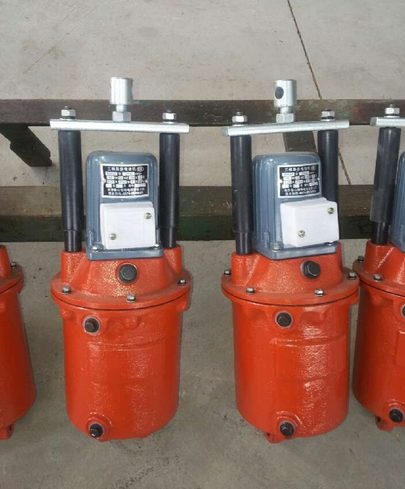 当通电时,电动机带动转达轴及转轴上的叶轮旋转,在活塞内产生压力,在此压力影响下,油由活塞上部吸到活塞下部,迫使活塞和固定在其上的推杆及横梁迅速上升。通过杠杆机械压缩负荷弹簧(推动器或制动器带有负荷弹簧者),产生机械运动。(若与YWZ系列液压推动器匹配则松闸)。当断电时,叶轮停止旋转,活塞在负荷弹簧力及本身重力作用下,迅速下降,迫使油重新流入活塞上部,这时仍然通过杠杆恢复复位。(若与YWZ系列制动器匹配则抱闸)。